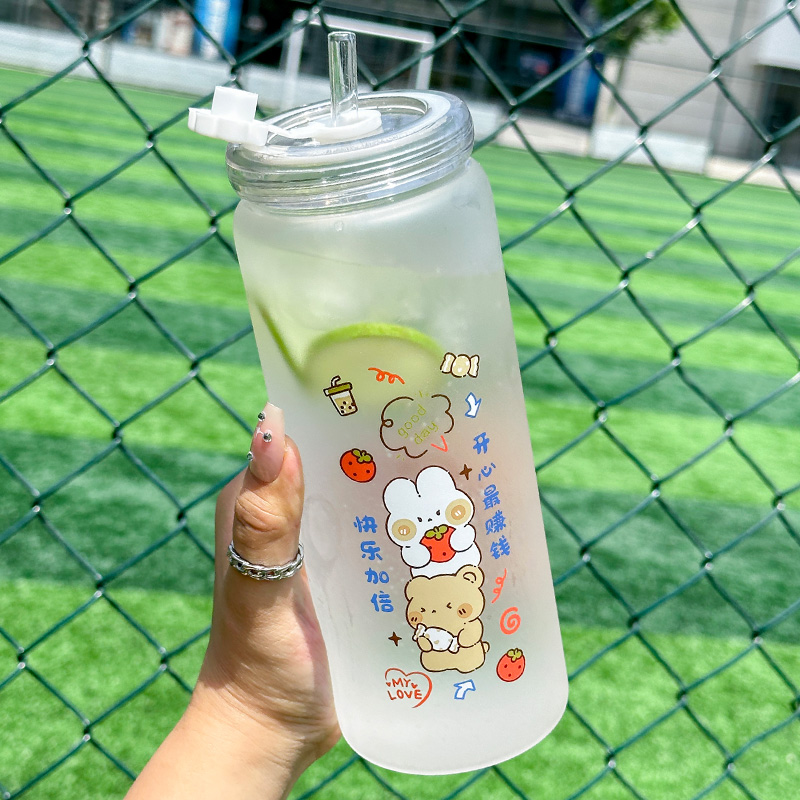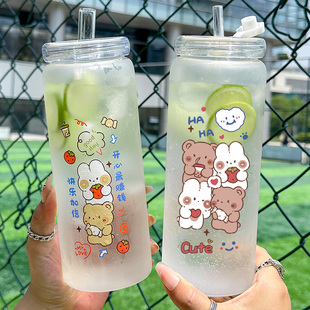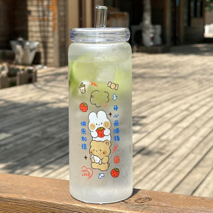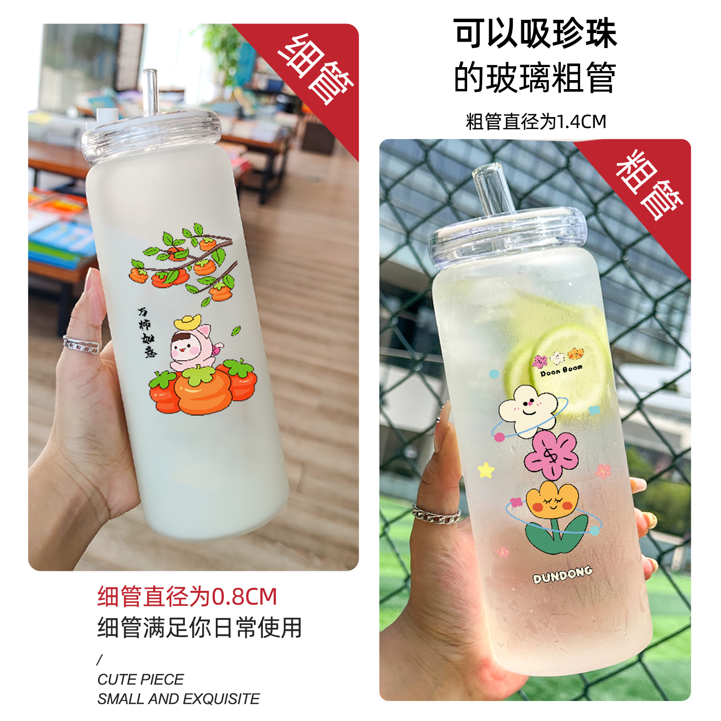 个性 家用冷饮杯子吸管800ml奶茶磨砂玻璃杯女学生宿舍办公室水杯