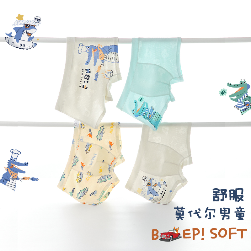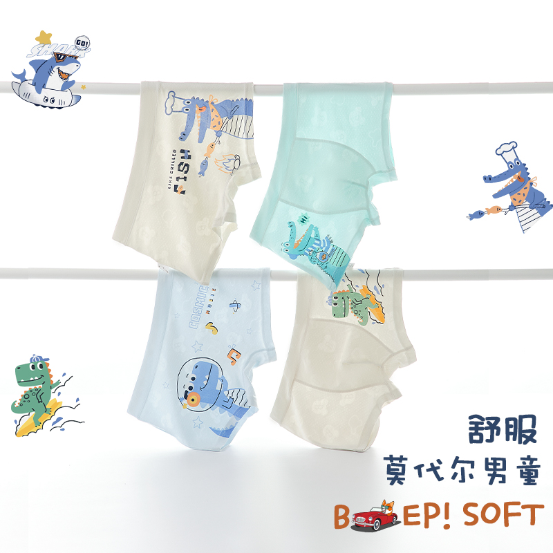 头新款 纯棉透气裤 男生3条装 平角裤 全棉时代男士 短裤 抗菌内裤