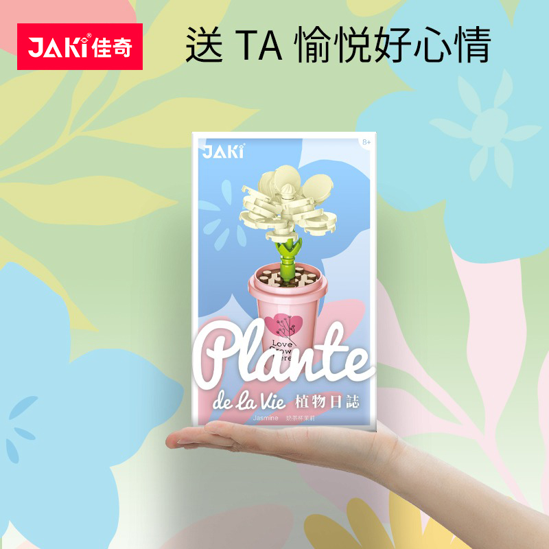 JAKI佳奇积木花束奶茶杯盆栽多肉植物日志桌面摆件送女友生日礼物