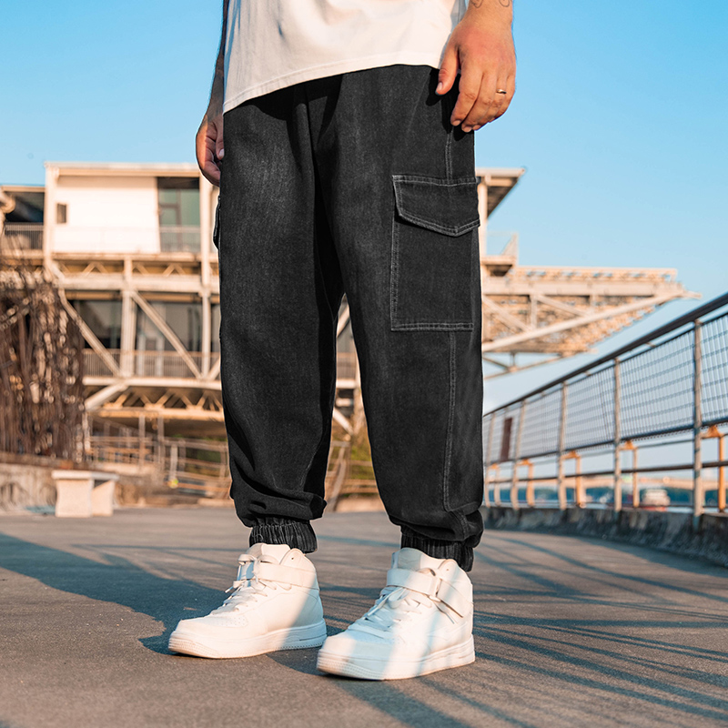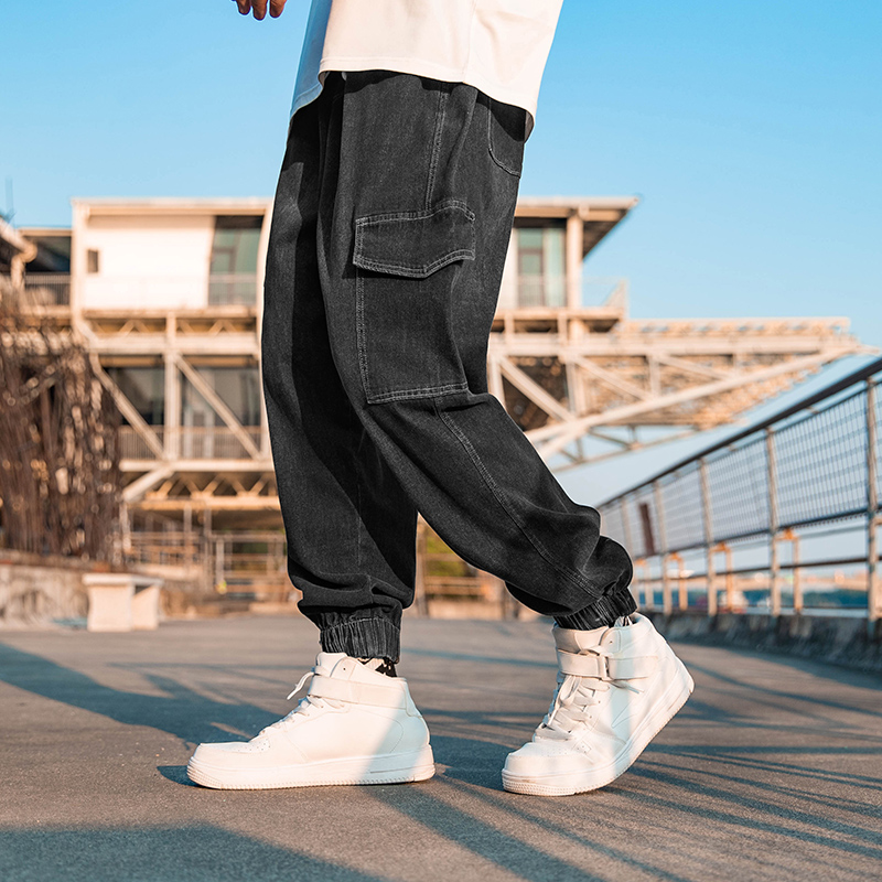 男胖子加肥加大潮流束脚裤 多口袋宽松牛仔长裤 男装 纺布者潮牌大码