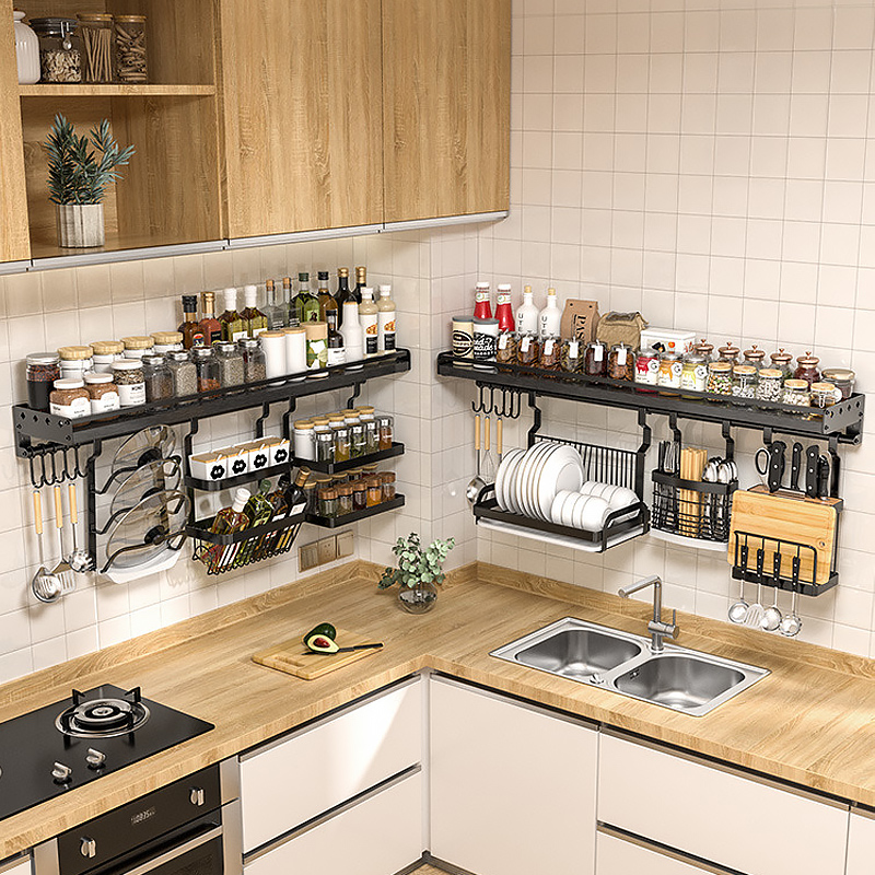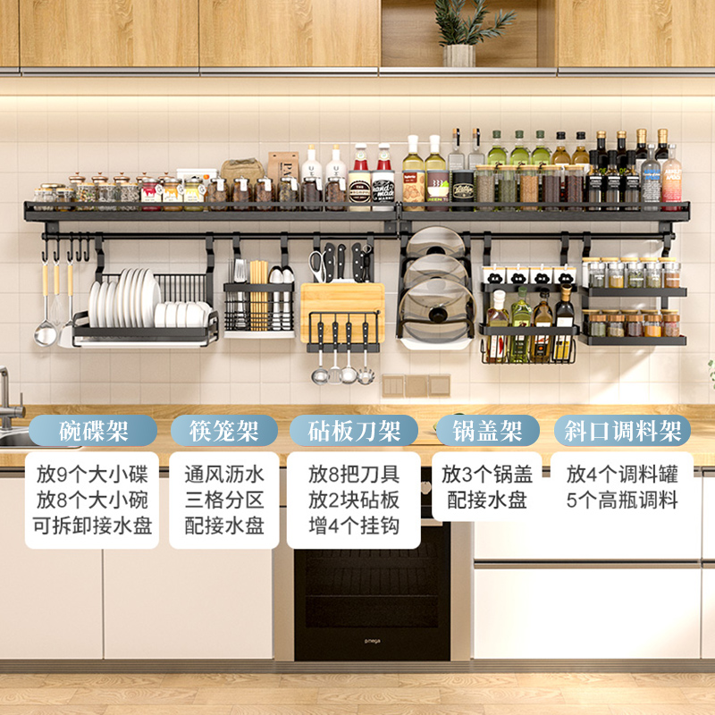 不锈钢厨房置物架壁挂式 调味品收纳架刀架 墙上免打孔挂架挂件套装