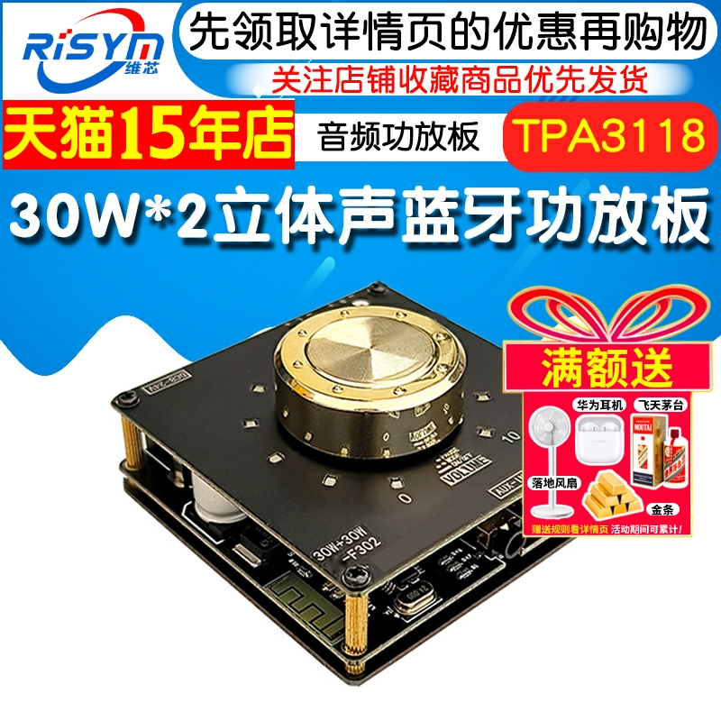 50W 50W立体声炫酷音量指示蓝牙音频功放板模块TPA3116D2无极调音