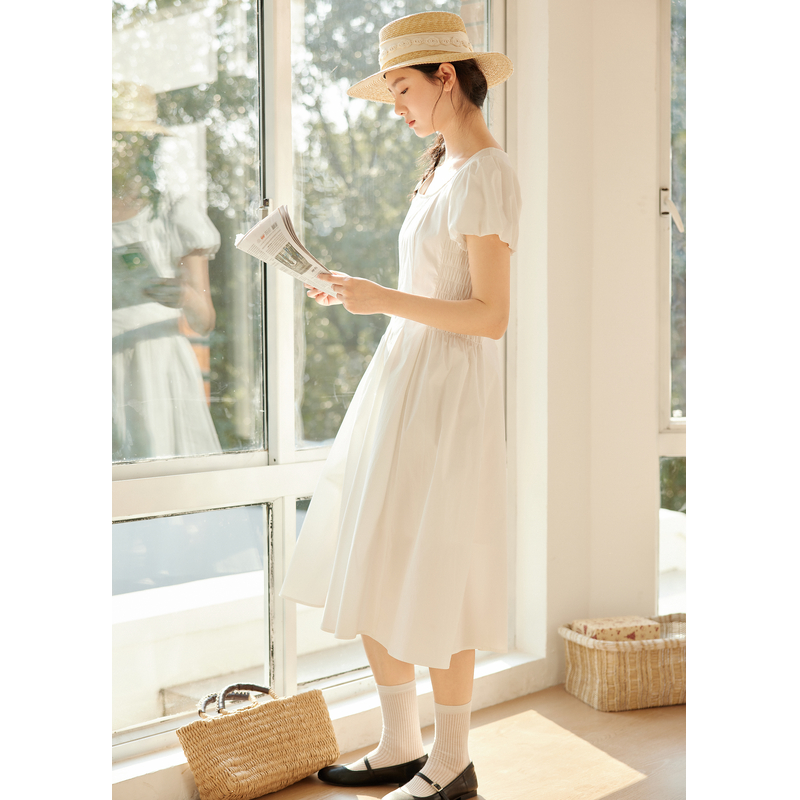 简约短袖 珂莱蒂尔2025新款 连衣裙优雅气质收腰A字裙 乔欣同款