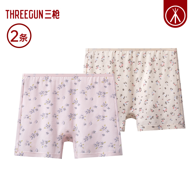2条 透气平角裤 三枪纯棉大码 女5A抗菌宽松二合一安全裤 四角 内裤