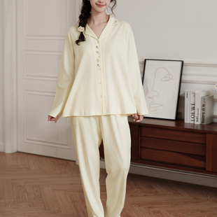纯棉睡衣女韩版 可外穿休闲家居服套装 开衫 长裤 薄 全棉长袖 芬腾春季