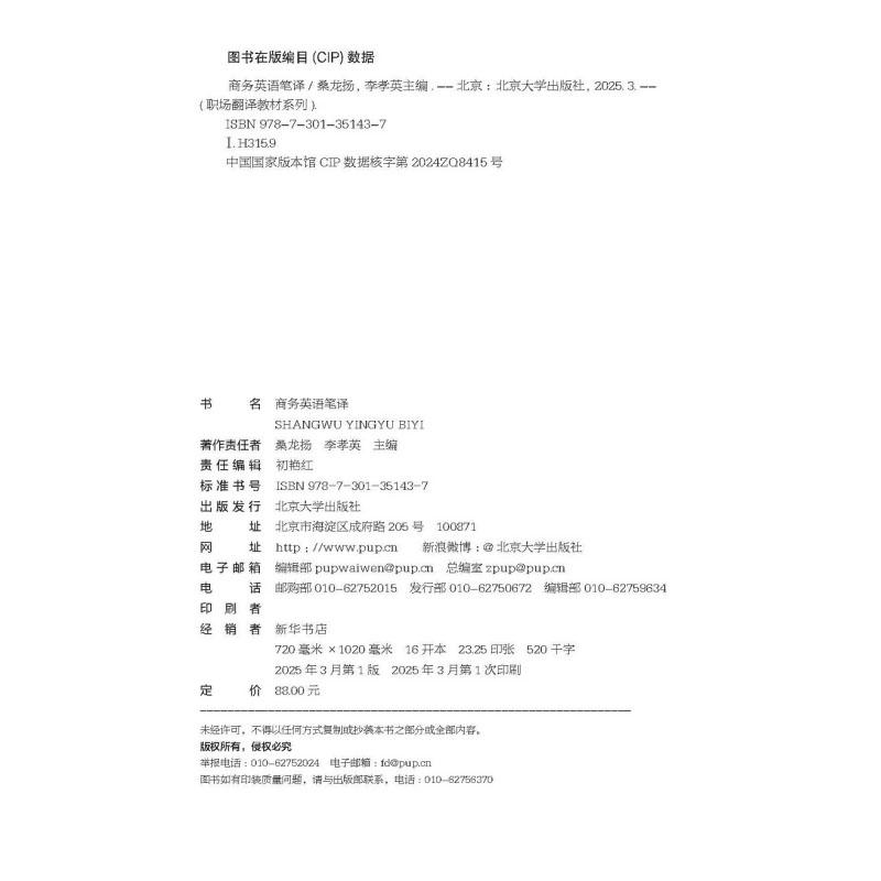 桑龙扬 商务英语笔译 李孝英 职场翻译教材系列 社9787301351437 正版 北京大学出版 2025新书