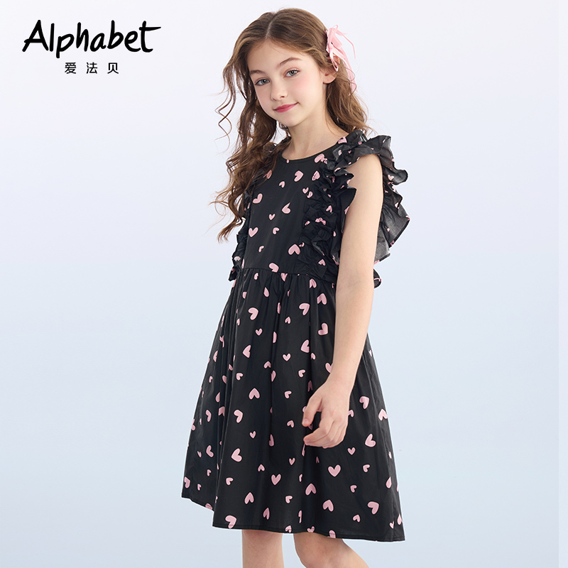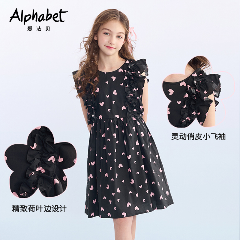 dfvc赫本风黑色连衣裙女秋2025新款 小个子小黑裙子 拼接木耳边长袖