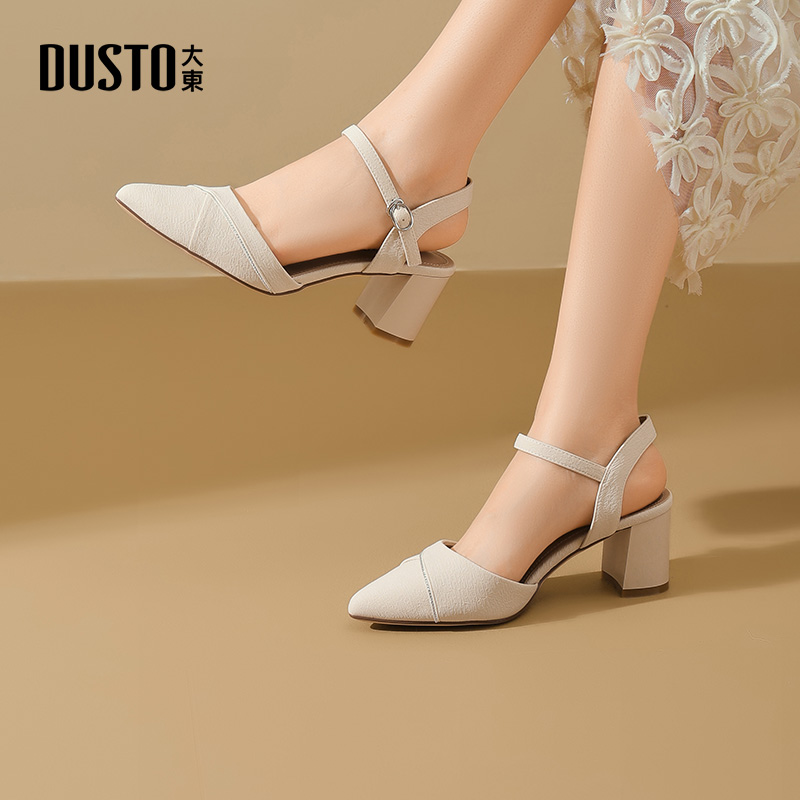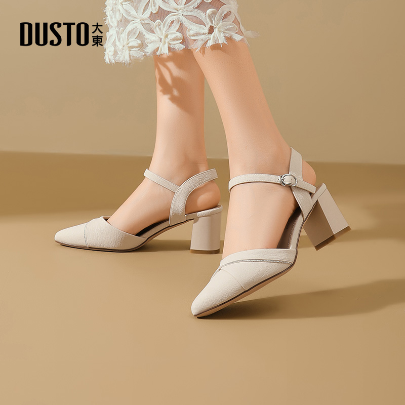 新款 2025夏季 简约粗跟高跟一字扣烫钻外穿X0821 女鞋 大东后空凉鞋