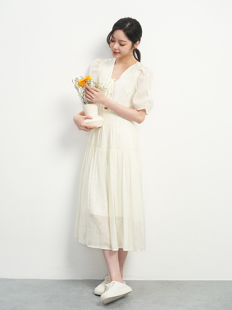 气质短款 女2025春新款 提花肌理感 小香风收腰连衣裙长袖 太平鸟法式