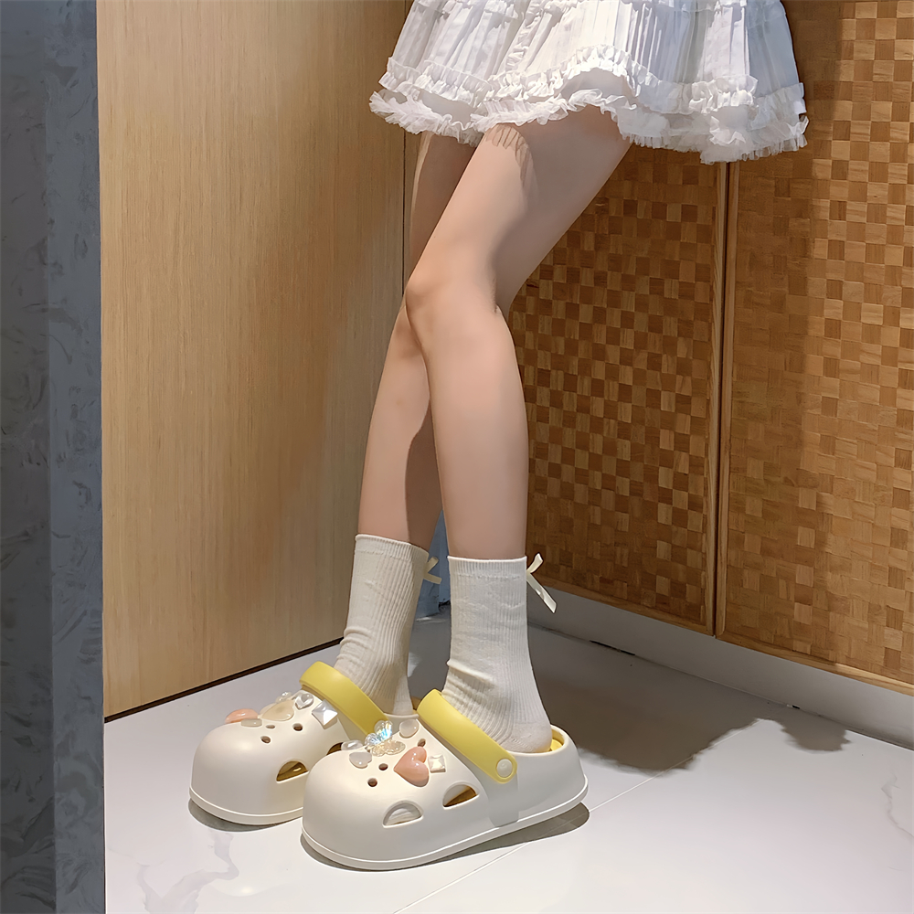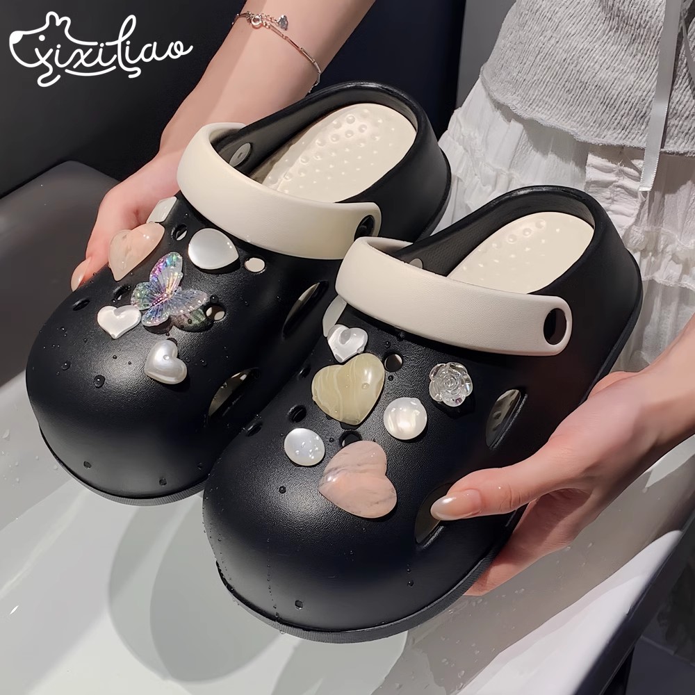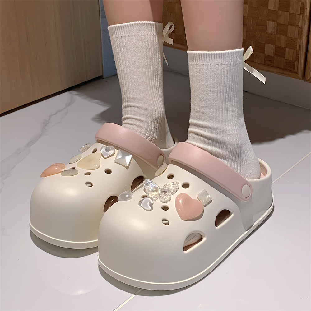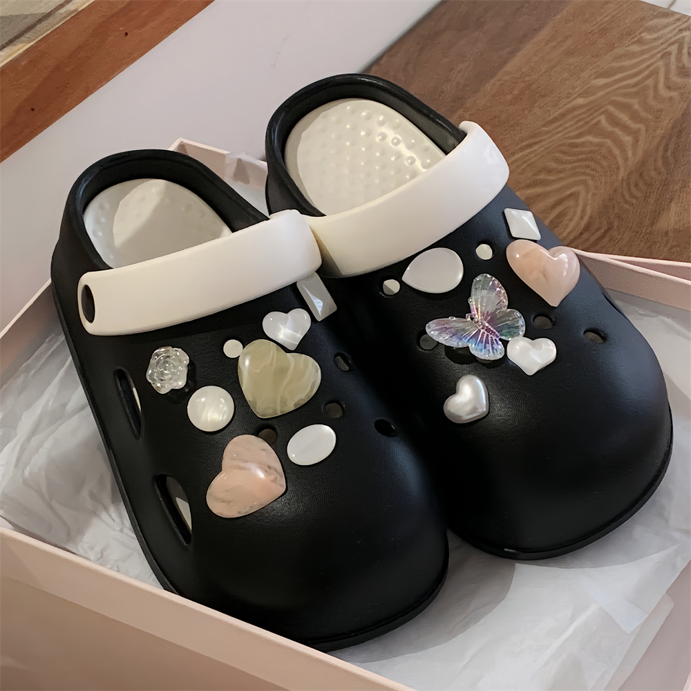 女士海边度假沙滩凉拖 拼色百搭仙女风夏季 甜美蝴蝶爱心洞洞鞋 时尚