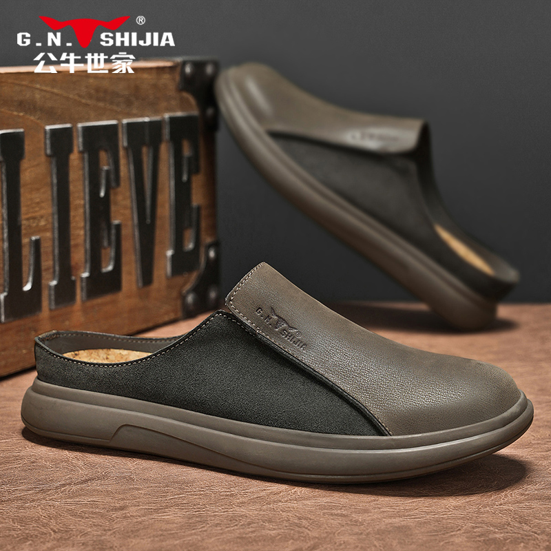 勃肯鞋 DYOWOZ 情侣款 平底休闲外穿半包头拖鞋 东园物作真皮软木鞋