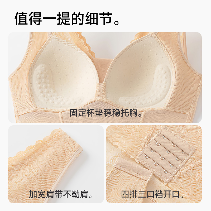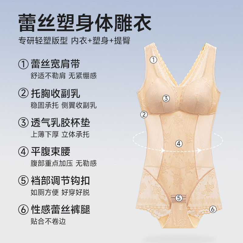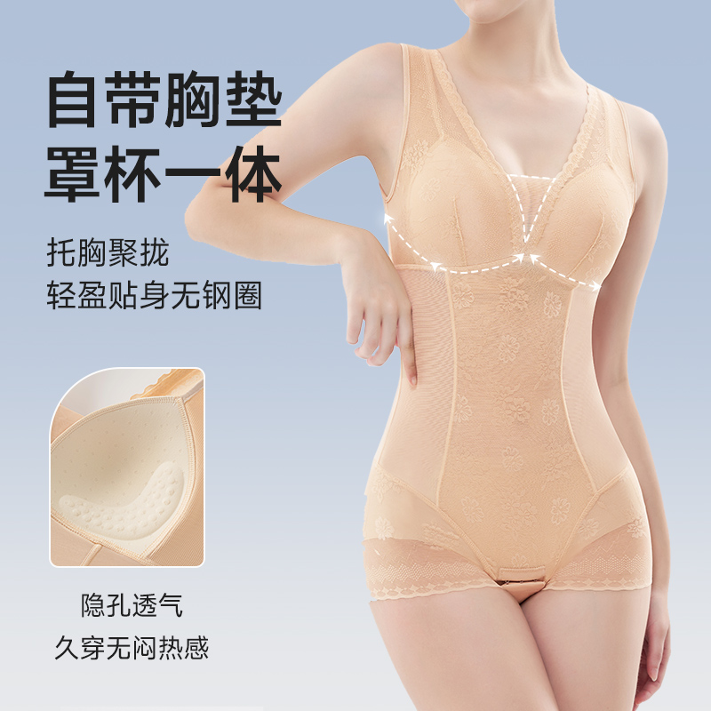 婷美连体塑身衣夏季 超薄凉感收腹提臀束身衣显瘦蕾丝内衣女带胸罩