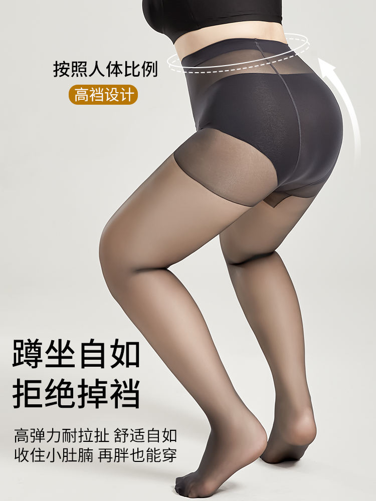 超薄高透黑丝连袜裤 丝袜女不掉档胖mm200斤夏季 高个子大码 加长版