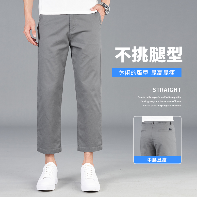 男士 男直筒九分春秋白裤 2025秋季 8分休闲裤 子 新款 纯棉白色八分裤