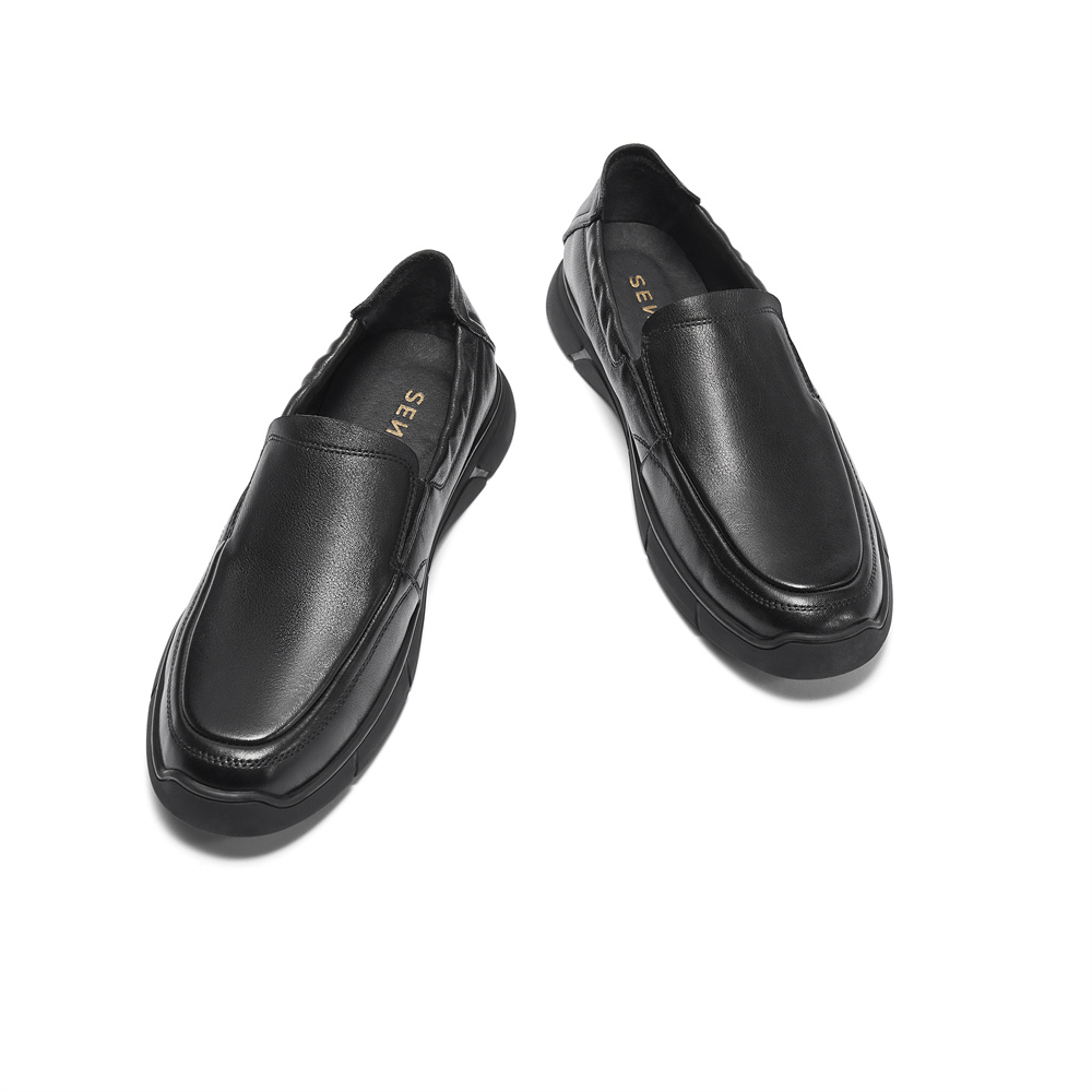 头层牛皮一脚蹬厚底商务休闲中老年爸爸男鞋 老人头皮鞋 男真皮秋季