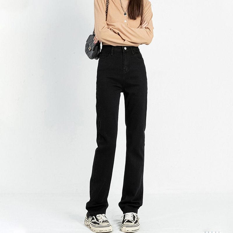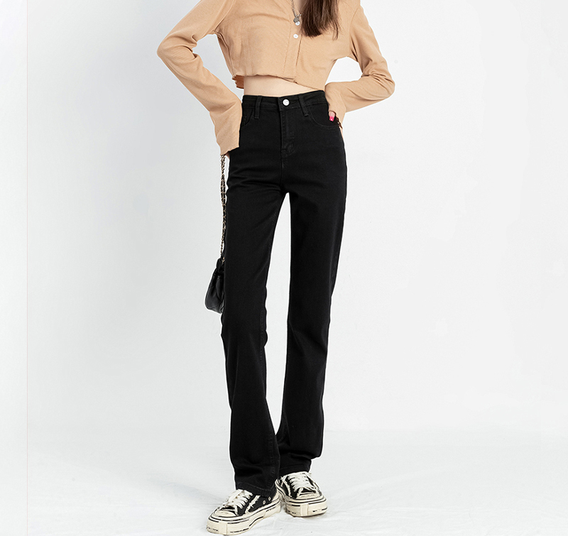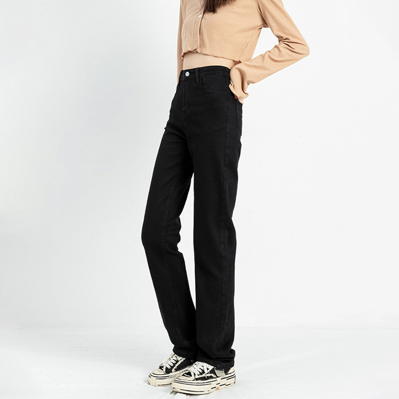 休闲显瘦百搭长裤 KP真维斯女装 女春秋款 黑色高腰直筒牛仔裤 子 春季