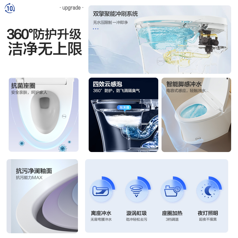 法恩莎轻智能马桶自动冲水小户型泡沫盾坐便器 政府补贴15%