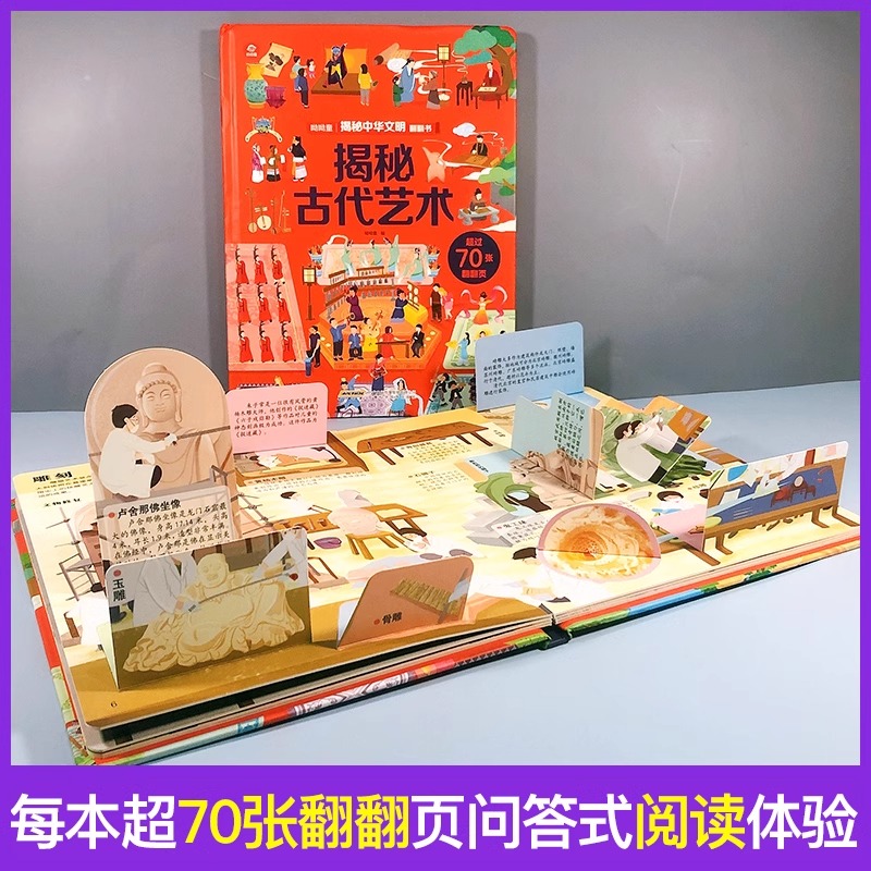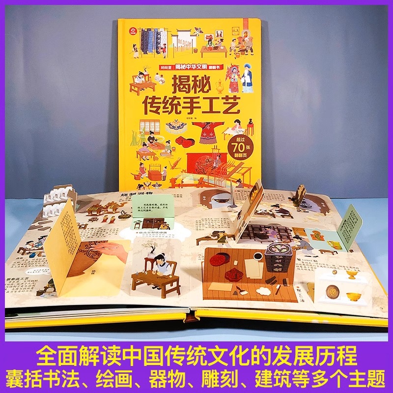 jt揭秘中华文明翻翻书套装 中华文明儿童3d立体翻翻书 揭秘古代艺术传统手工艺 12岁儿童绘本中国名俗文化科普百科大全书 2册
