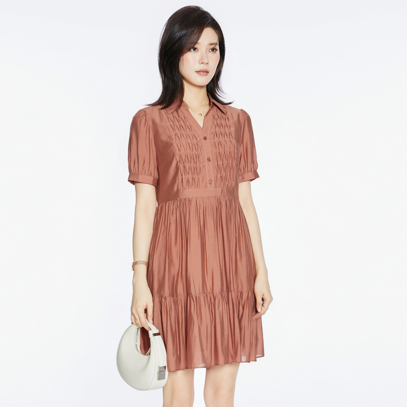 显瘦休闲气质衬衫 设计感连衣裙女装 领收腰裙 新款 风笛2024夏季