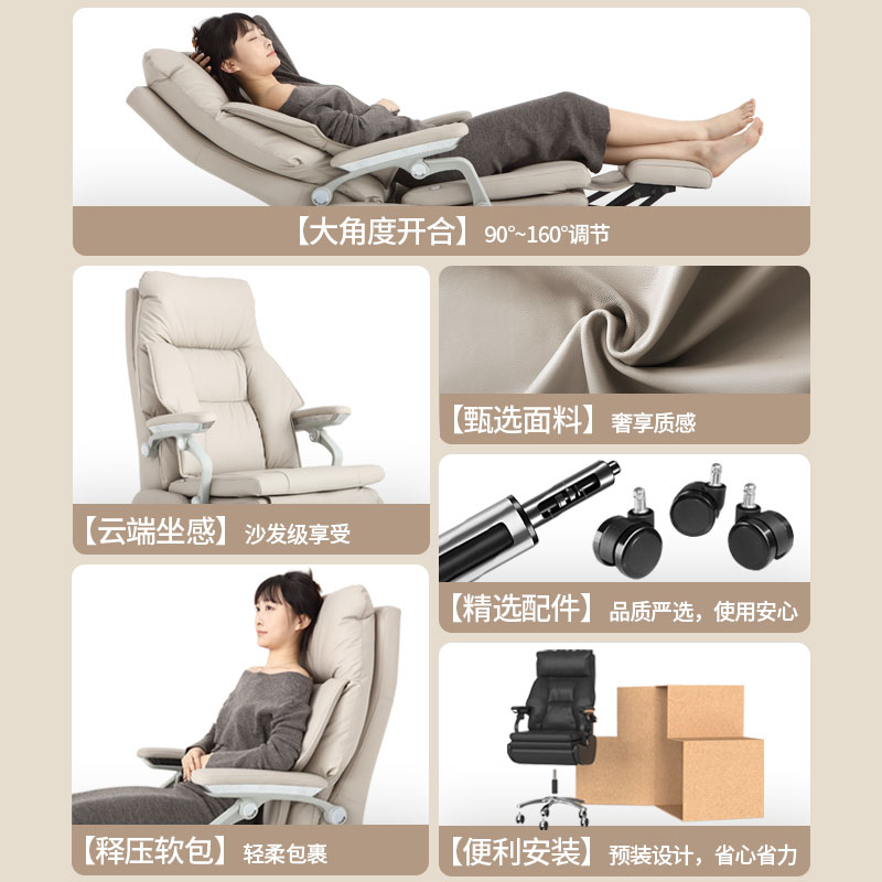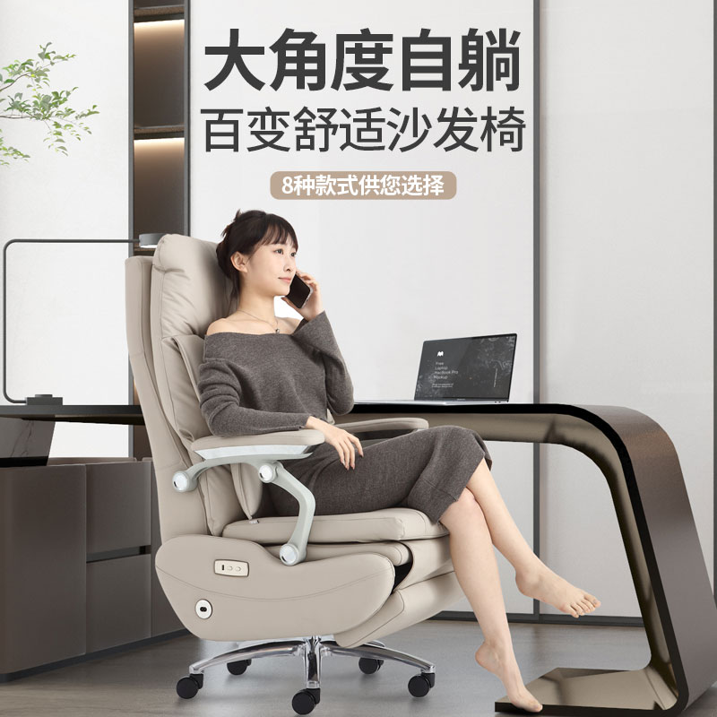 真皮老板椅办公室椅子舒适久坐电脑椅家用可躺转椅商务按摩大班椅