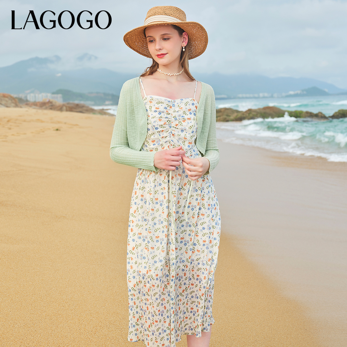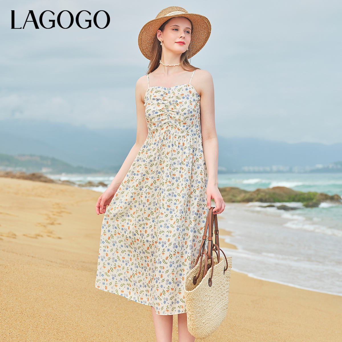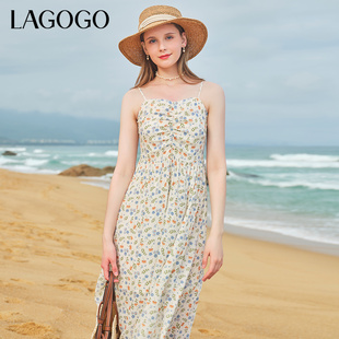 温柔气质连衣裙女 法式 Lagogo拉谷谷茶歇碎花修身 吊带裙2024夏新款
