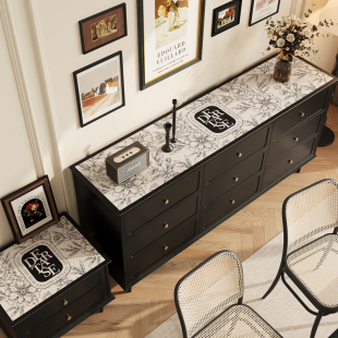 轻奢高级感中古风桌布餐桌垫防水防油防烫皮革法式 复古免洗茶几垫