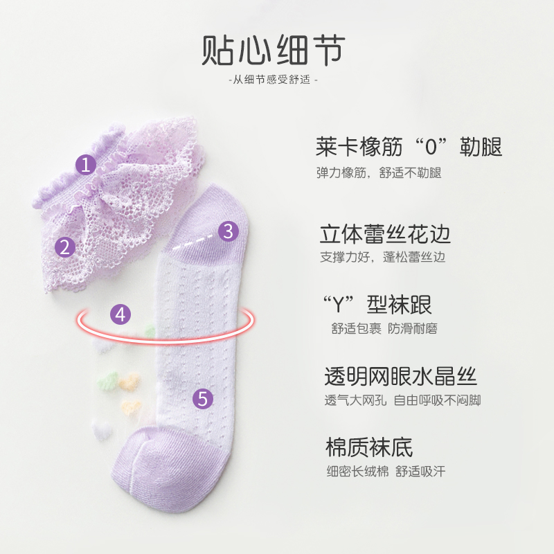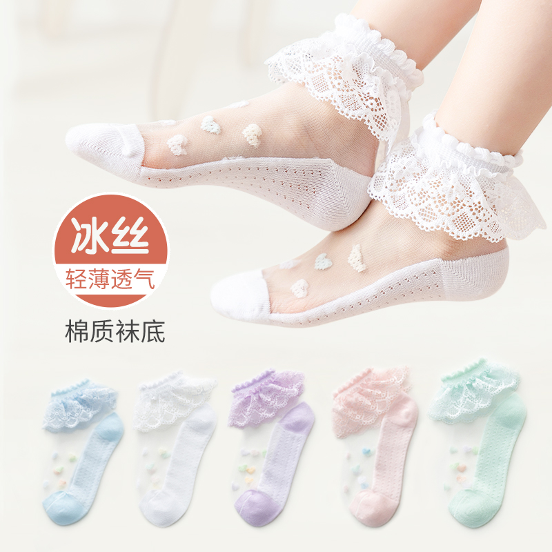 女童袜子夏季 冰丝水晶袜纯棉玻璃丝女宝宝短袜公主夏天短筒袜 薄款
