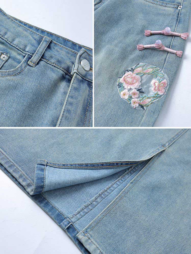 百搭显瘦开叉裙女生 浅色高腰显瘦牛仔半身裙女中长款 2025夏季 新款