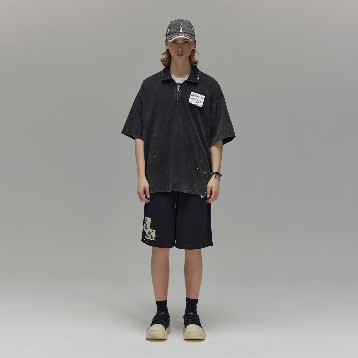 修身 森马POLO衫 复古辣妹夏季 设计感绑带美式 印花上衣小心机 女短款