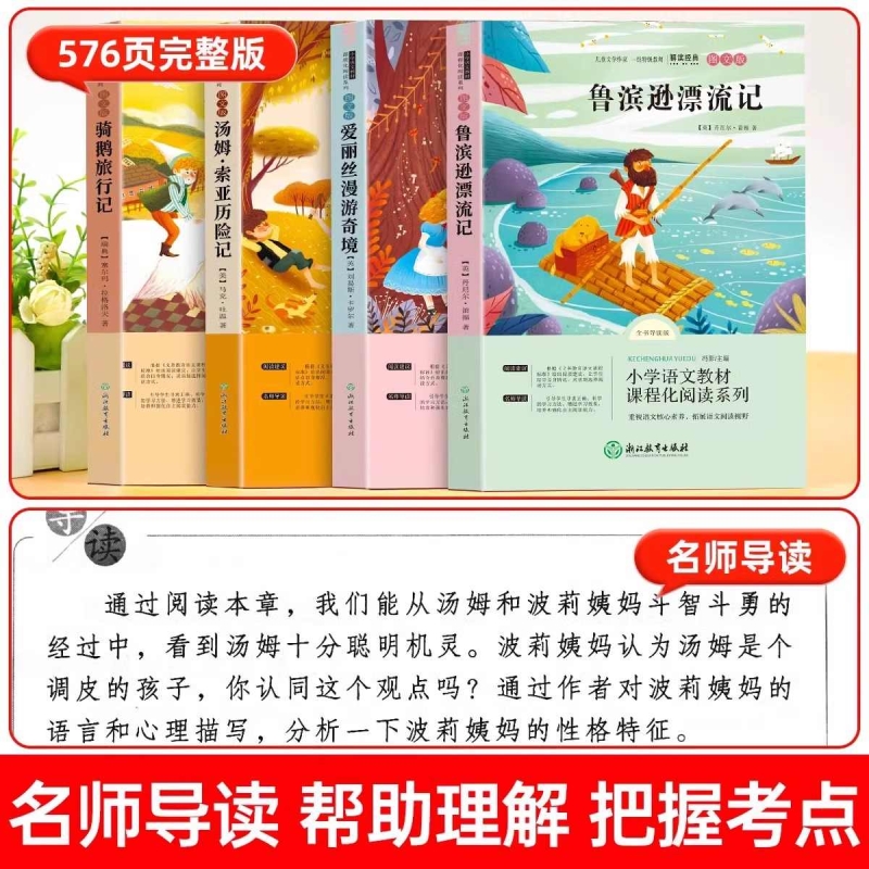 快乐读书吧六年级下老师推荐 教育小英雄雨来童年教材必读书目课外 阅读鲁滨逊漂流记汤姆索亚历险记爱丽丝漫游奇境骑鹅旅行记爱