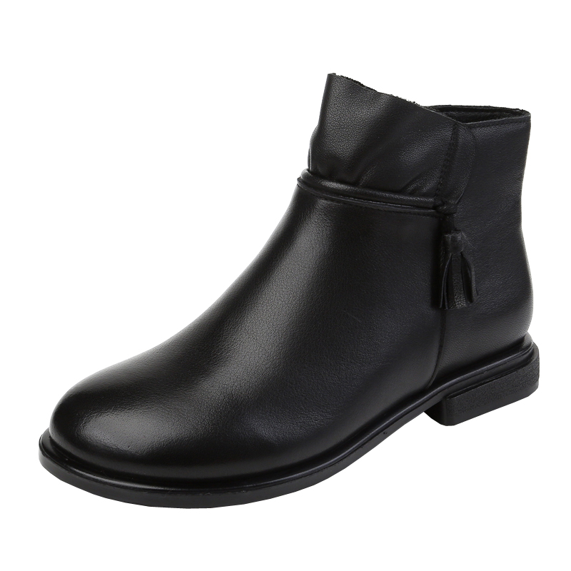 冬季 2025春秋季 加绒棉鞋 真皮平底单靴女软皮妈妈鞋 软底小短靴 新款