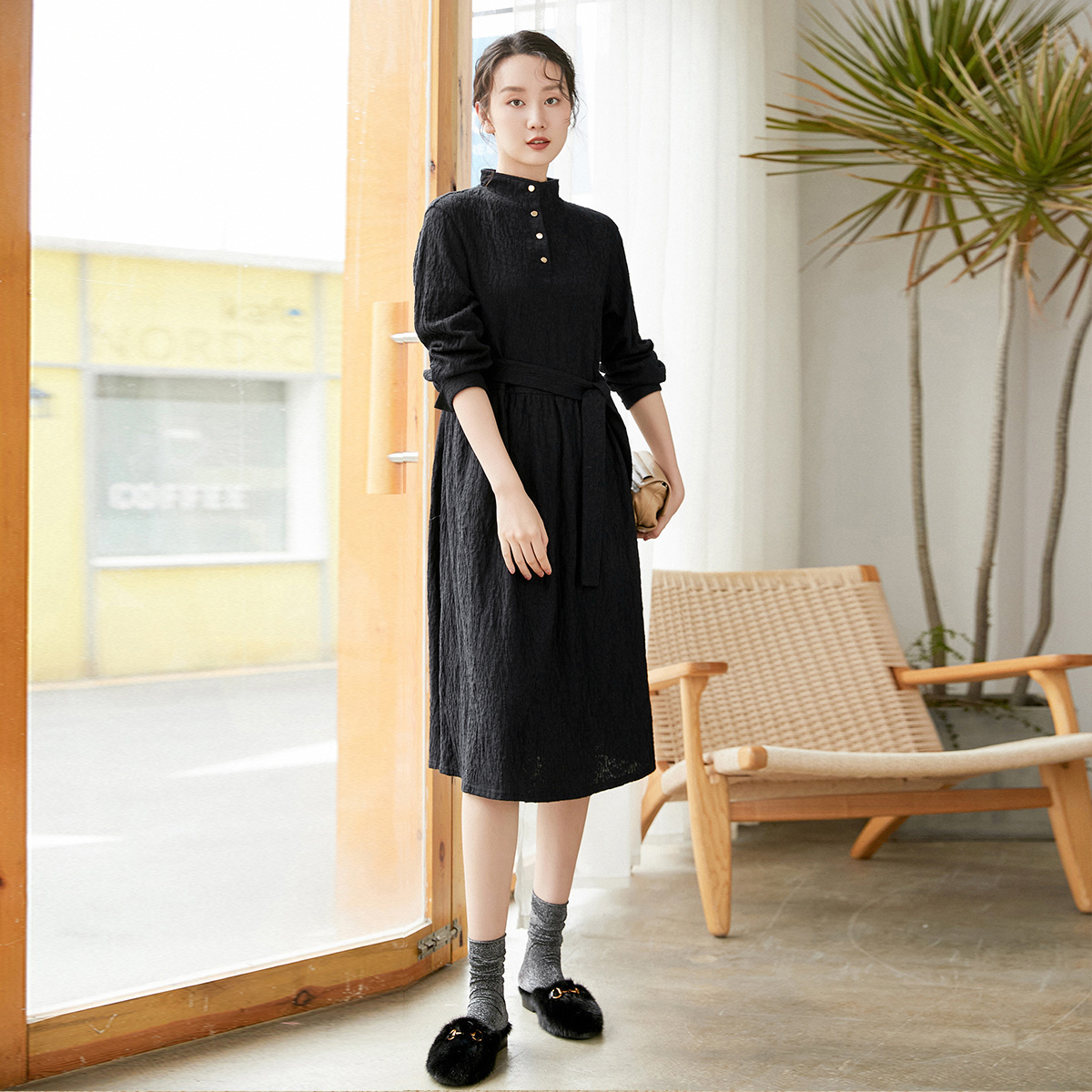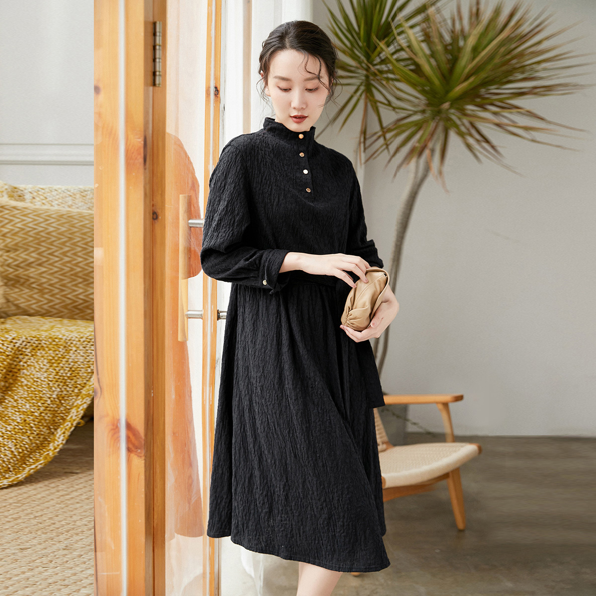 立领设计感裙商场同款 蒲PUKKA 时尚 棉质连衣裙冬装 女装