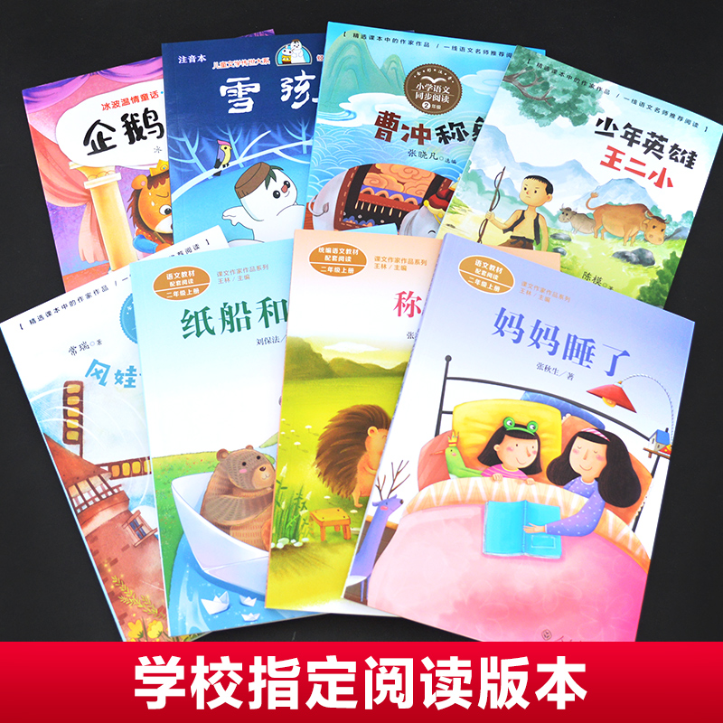 统编小学语文教材配套阅读书籍故事 妈妈睡了称赞纸船和风筝曹冲称象雪孩子企鹅寄冰人教版 二年级上册课外书读注音版 8册