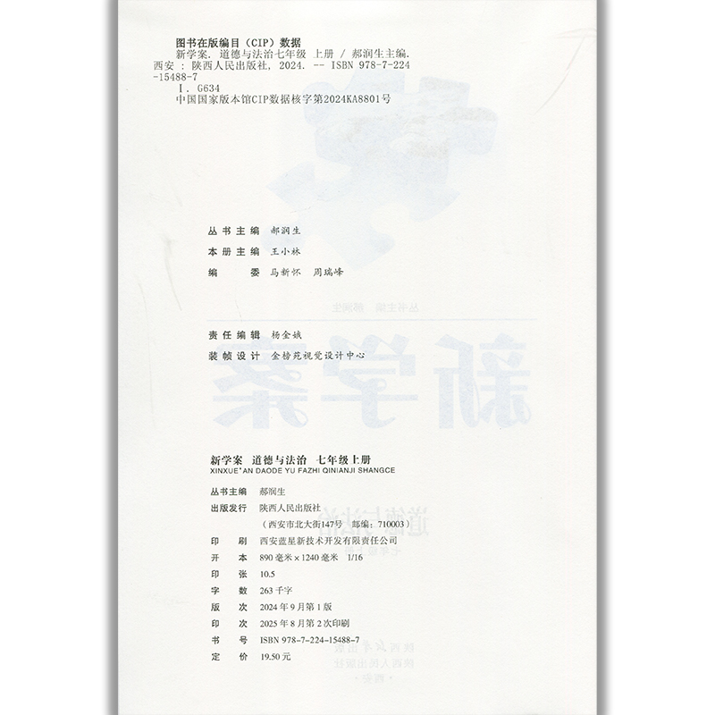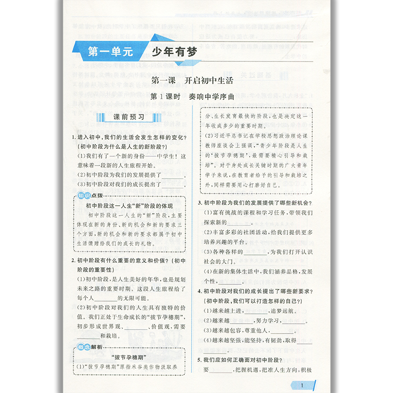配送试卷含答案 部编版 初中初一上学期政治七年级上册教辅同步配套练习册 实验教材新学案7七年级上册道德与法治配人教版 2025新版