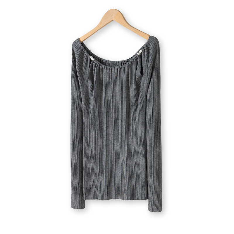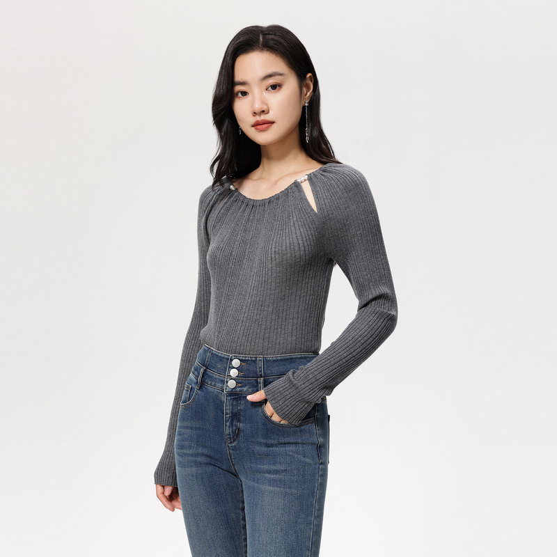 清仓直降 显瘦长袖 飘蕾法式 女冬季 毛衫 一字肩圆领针织衫
