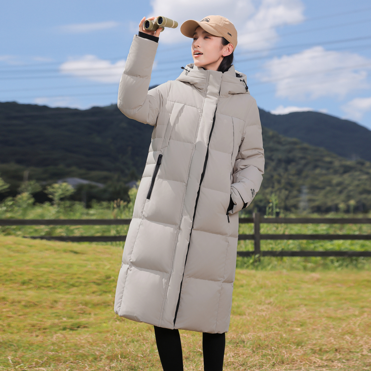 时尚 鸭鸭中长款 韩版 新款 保暖加厚过膝黑金外套潮 羽绒服女连帽冬季