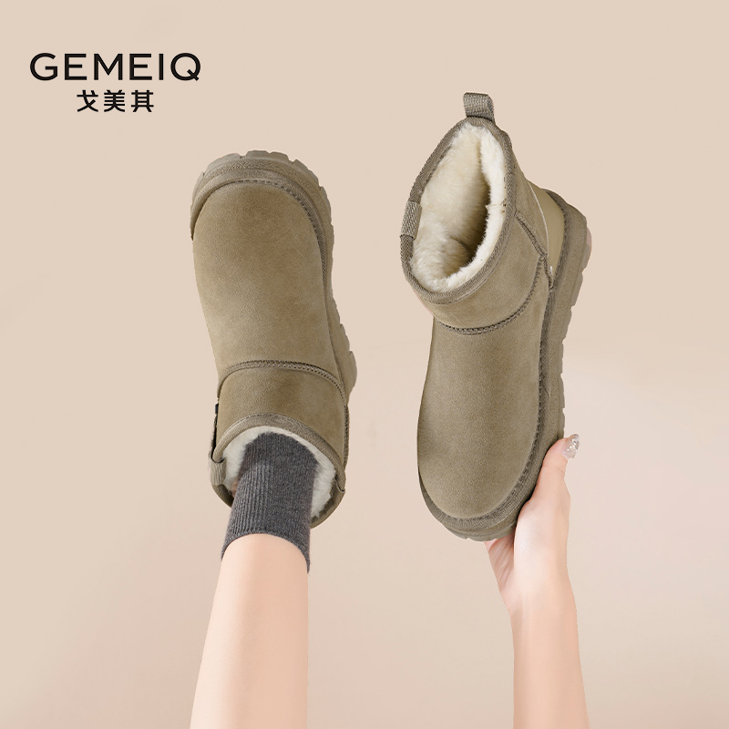 加绒加厚保暖棉鞋 戈美其真皮皮毛一体雪地靴女款 时尚 季 舒适新款