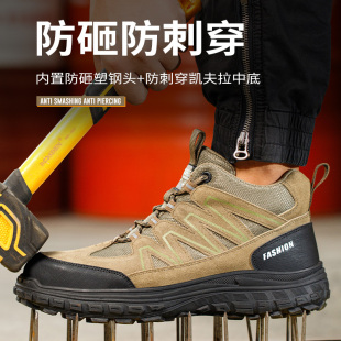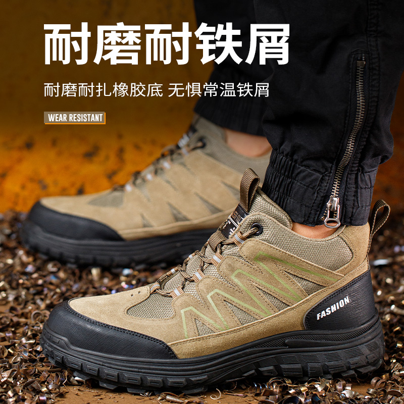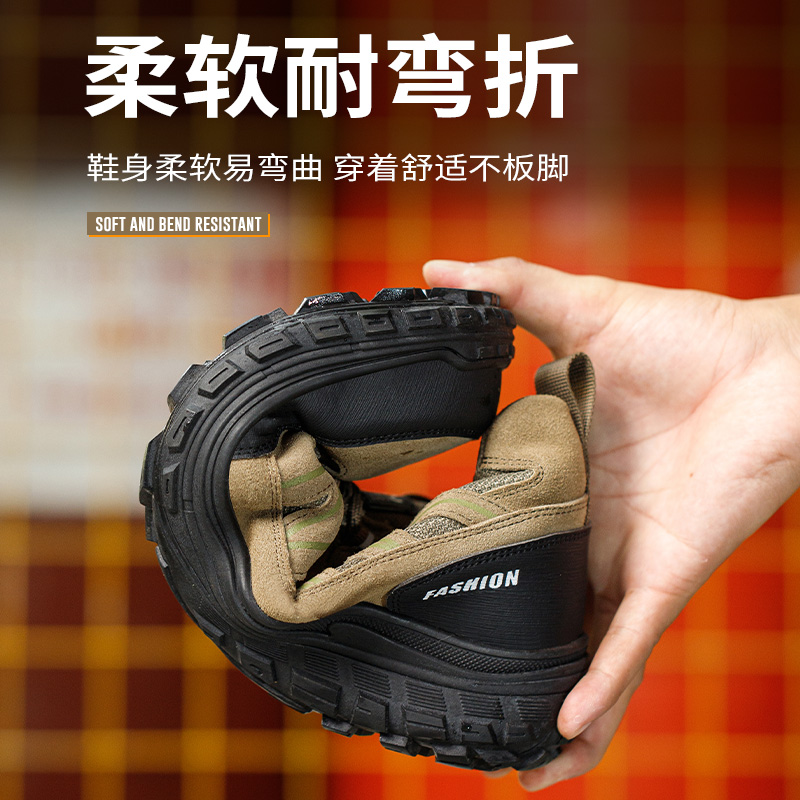 劳保鞋 士久站不累防砸防刺穿轻便钢头老保带钢板安全工作高帮 男款