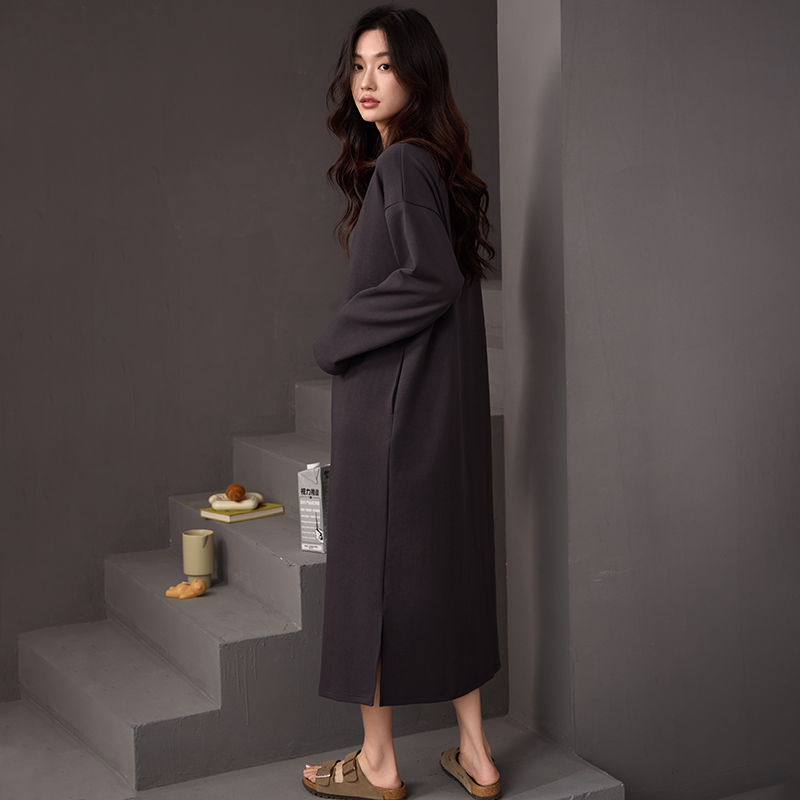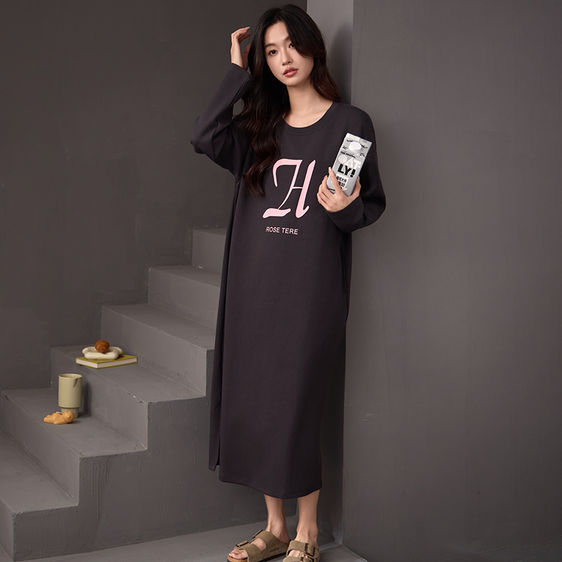 贝妍珊瑚绒睡衣女款 条纹家居服睡裙 秋冬保暖半边绒小香风睡袍大码