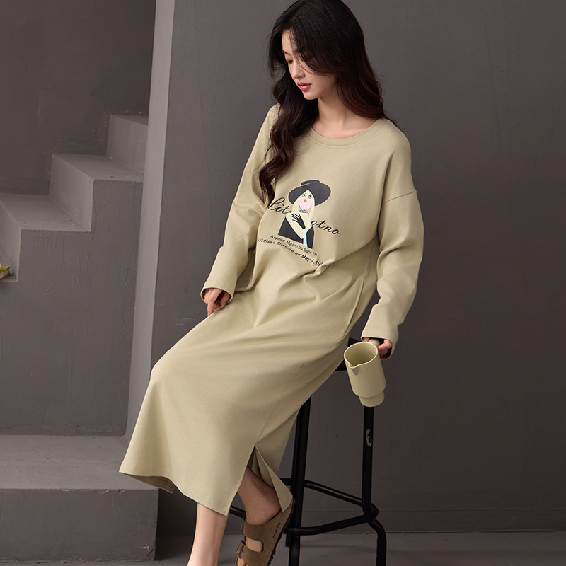 连衣裙休闲卡通睡衣女士家居服2025新款 中长款 纯棉短袖 睡裙女夏季