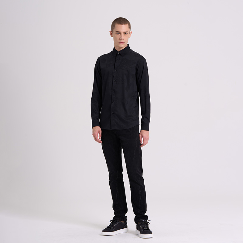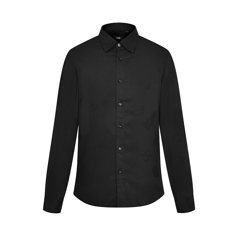 秋冬新款 衬衫 品牌标志暗提花黑色衬衣 商务长袖 男士 RARE威雅男装