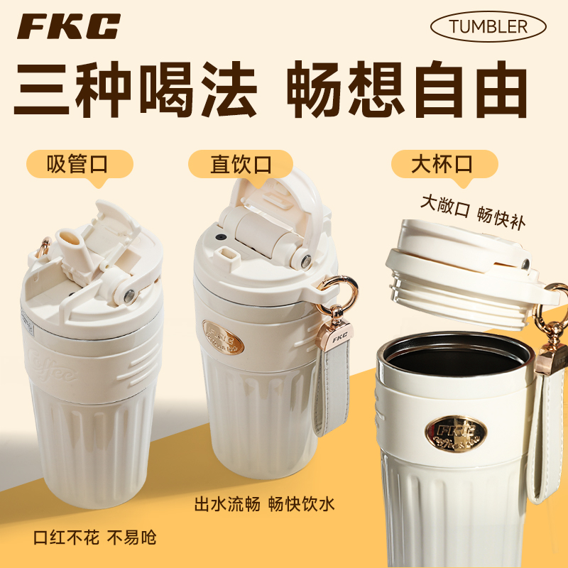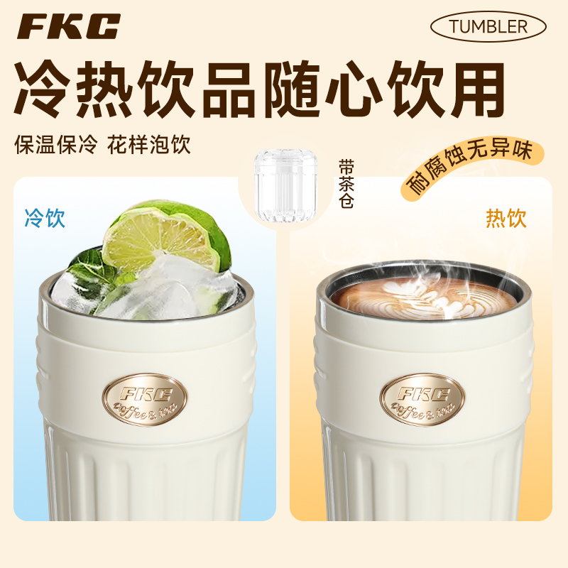 FKC双饮保温保冷杯316L不锈钢内胆便携咖啡杯随行水杯高颜值杯子