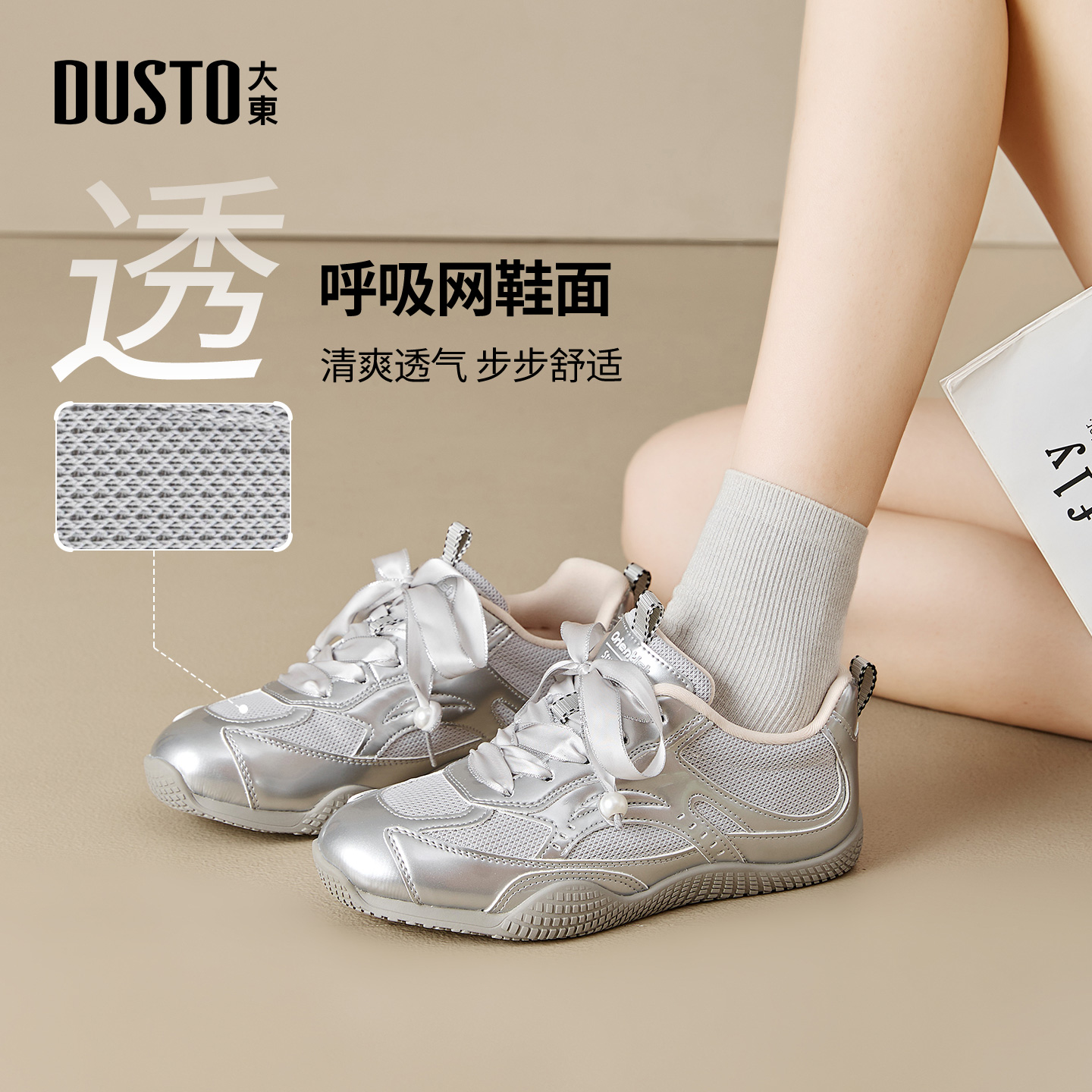 2025秋季 骆驼女鞋 新款 休闲透气老爹鞋 女 厚底增高银色运动鞋 银熠