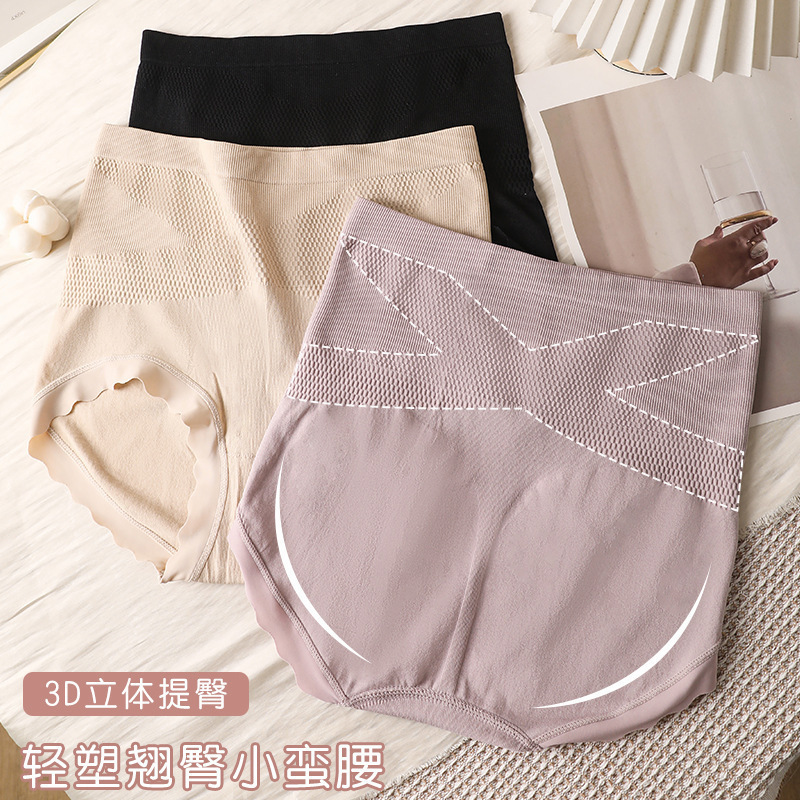 200斤桑蚕丝裆提臀无缝塑身三角裤 女高腰大码 X型绷带收腹内裤 新款
