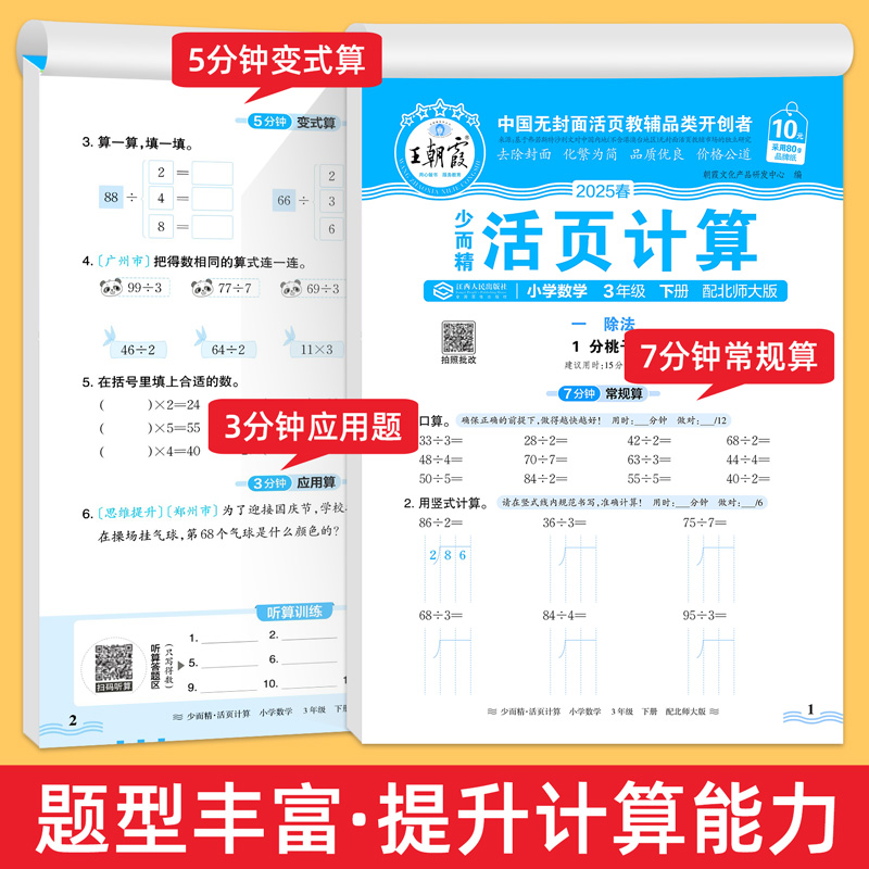 苏教版 北师版 上册下册数学计算题强化训练口算计算天天练每日一练同步练习题练习册 王朝霞活页计算一二三四五六年级人教版 2025新