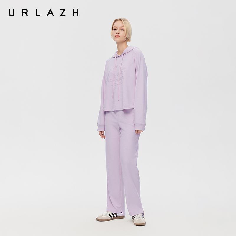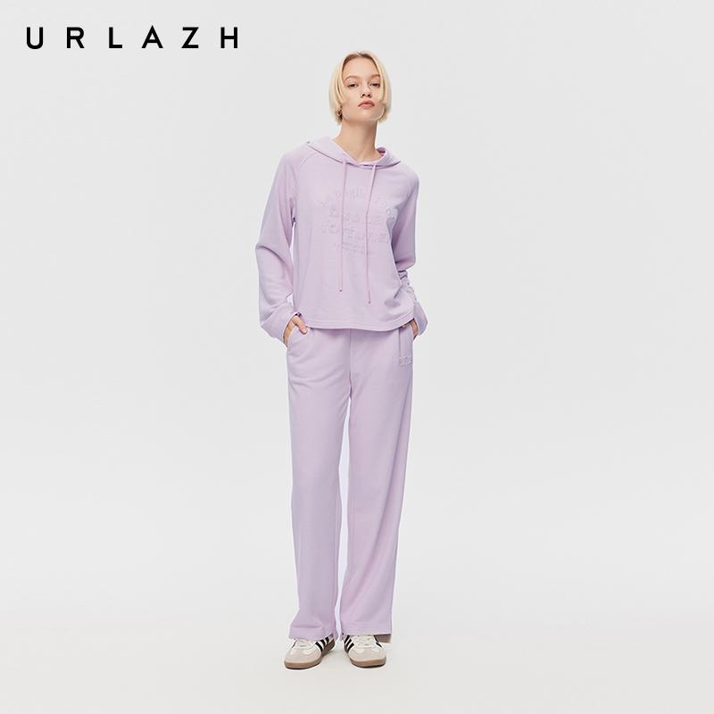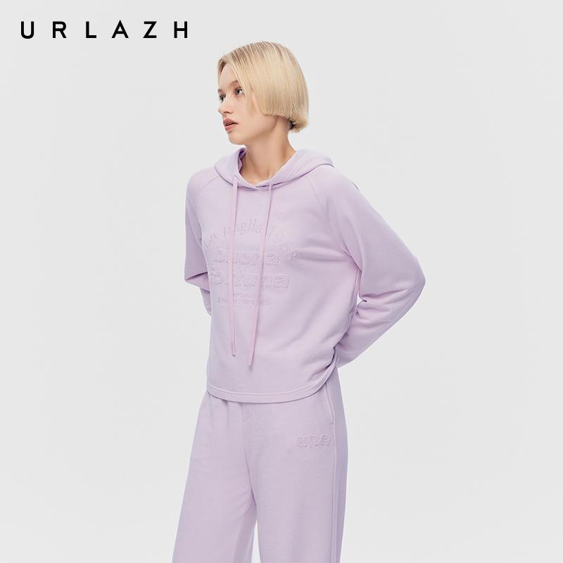 香芋紫字母绣花插肩袖 新款 连帽卫衣女 URLAZH有兰2025秋季 商场同款