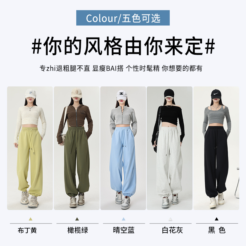 早春季 2025新款 宽松美式 束脚卫裤 子 运动裤 白灰色休闲裤 女春秋薄款