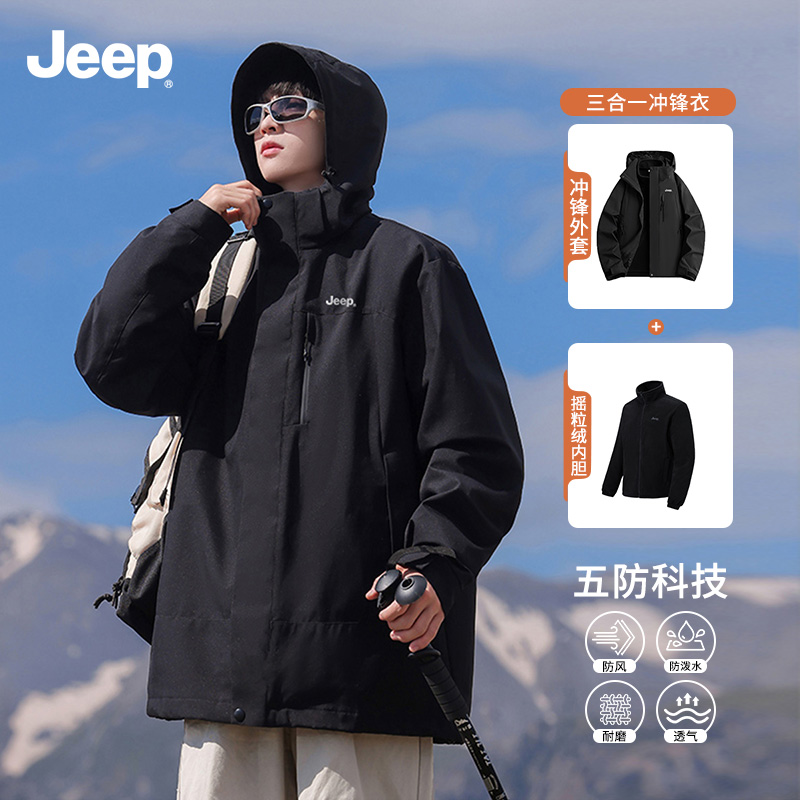9.22 JEEP SPIRIT焦糖色冲锋上衣三合一防风防水耐磨抗污