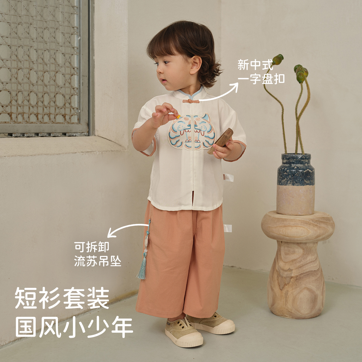 宝宝九分裤 夏装 儿童抗菌凉感两件套2025新款 戴维贝拉男童国风套装