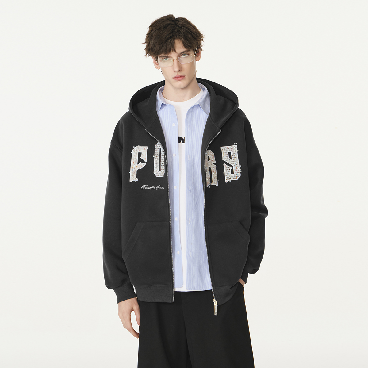 情侣装 美式 外套 连帽卫衣男女潮牌2025新款 FORNINES小香风重磅开衫